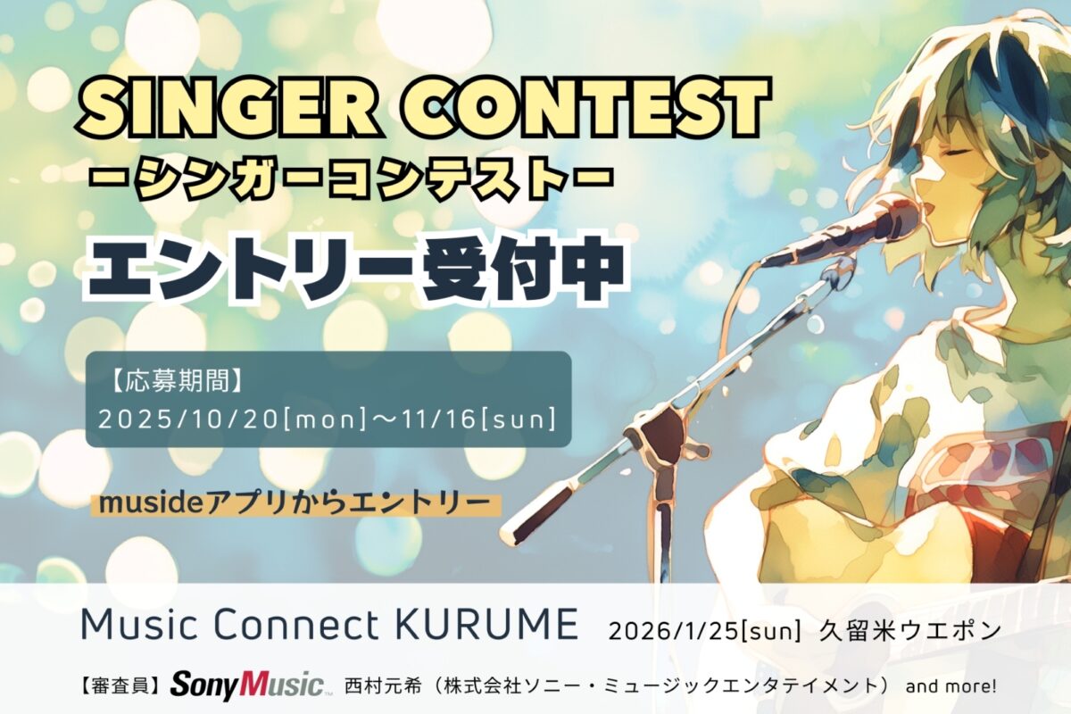 未来で活躍するアーティストを発掘し、活動を応援するため、イベント「Music Connect KURUME」内でライブコンテストを開催します。