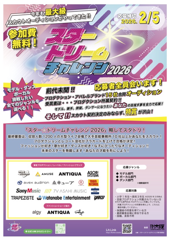 〈応募方法〉 「スター☆ドリームチャレンジ」公式LINEからエントリープロフィールのLINKまとめサイトからアクセスできます※お問い合わせも公式LINEにて受付