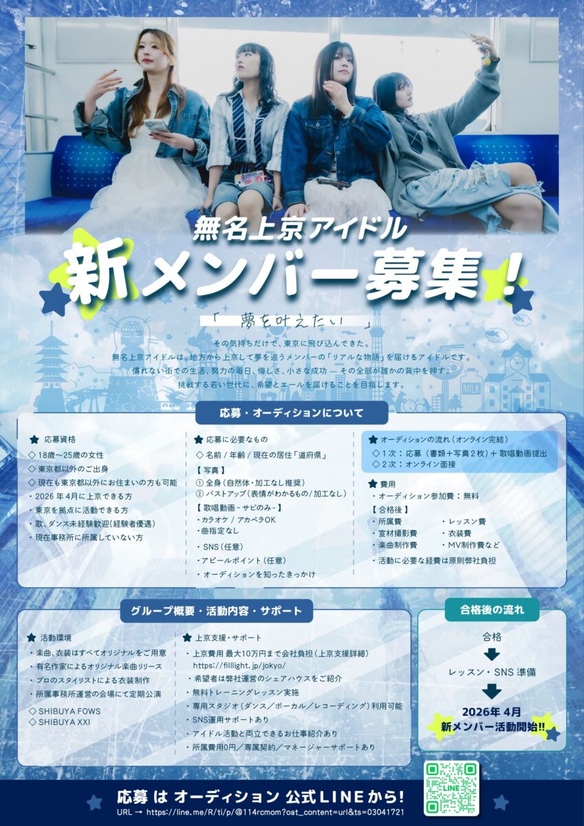 「無名上京アイドル」レッスン環境完備、新メンバーオーディション