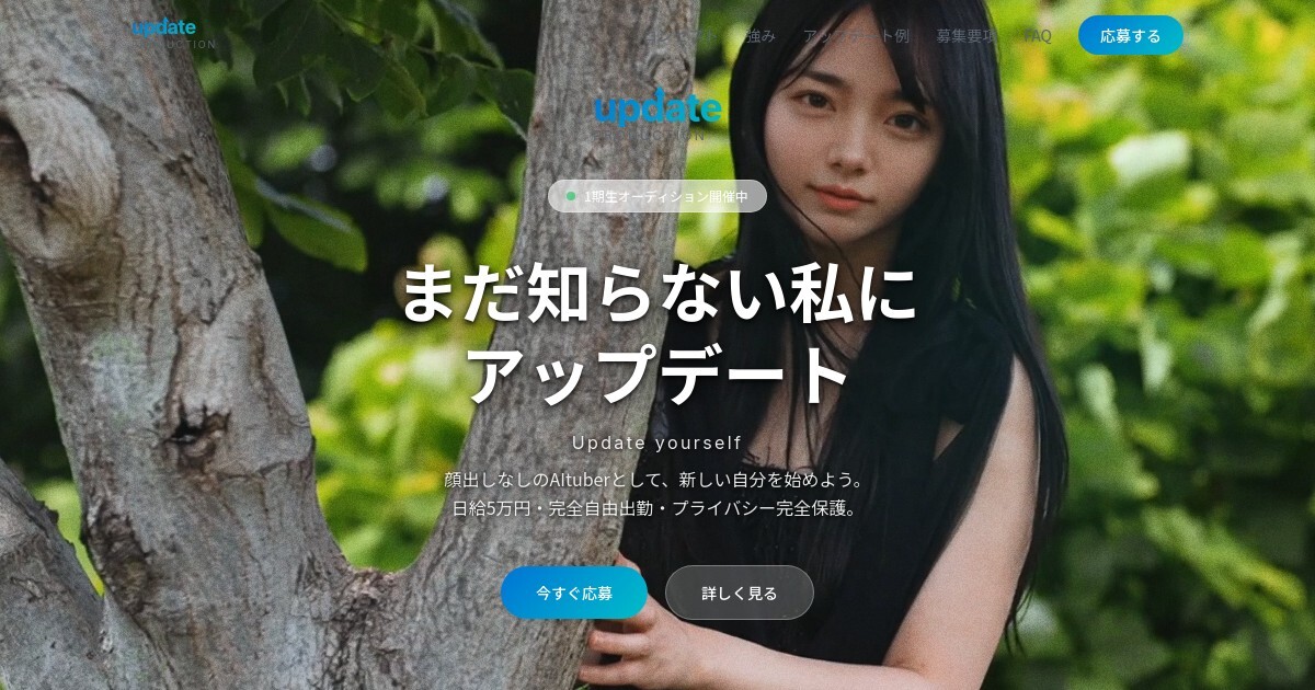 updateプロダクションがAItuberとして活躍する1期生を求めています。